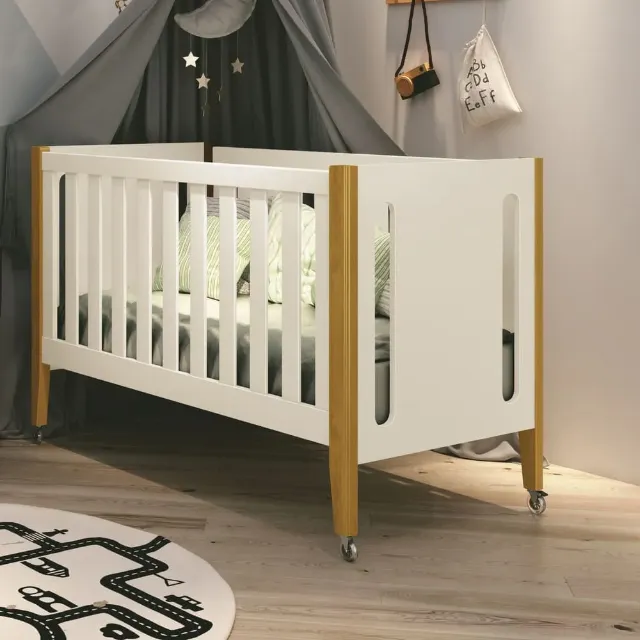 Lindo berço 3 em 1, ideal para o quarto do seu bebê! Design moderno e funcional, com rodinhas para facilitar a movimentação.