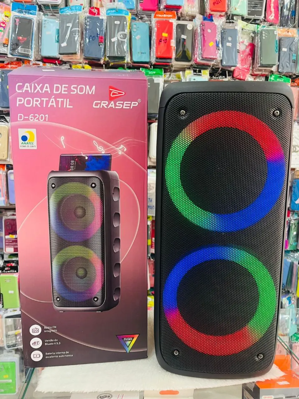 Apresentamos a Caixa de Som Portátil Grasep D-6201, a combinação perfeita de som potente e design moderno! Com rádio FM integrado e Bluetooth 5.3, você terá diversas opções para ouvir suas músicas favoritas. Sua bateria interna de excelente autonomia garante horas de diversão. Ilumine suas festas com as luzes RGB vibrantes!