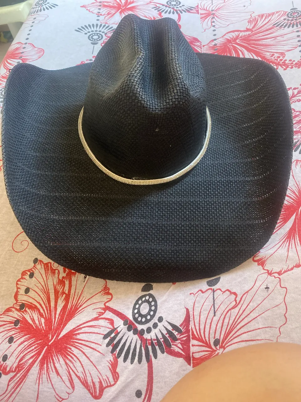 Chapéu country usado somente uma vez com fita de brilho, sem forma Chapéu preto marca palha fina