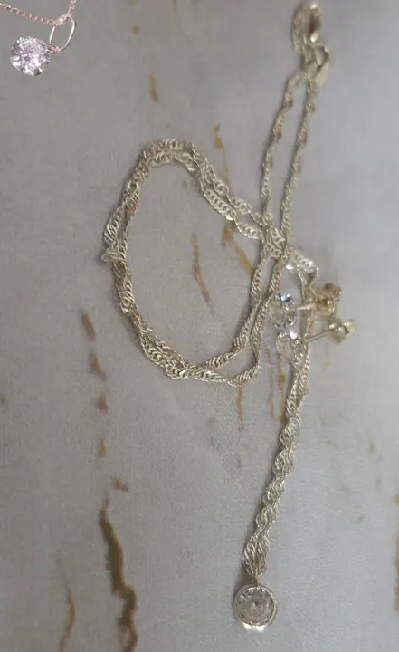 Conjunto lindo e delicado de colar e brincos em prata 925. Perfeito para presentear ou para usar em ocasiões especiais.