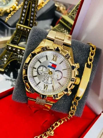 Relógio acompanha pulseira ou corrente e caixa.