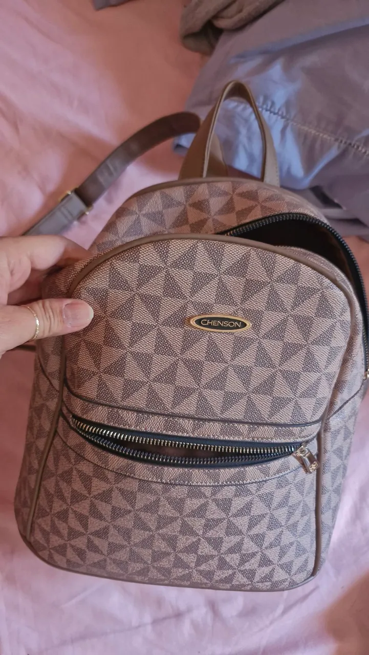 Mochila Chenson com design geométrico moderno e elegante. Ideal para o dia a dia, combinando praticidade e estilo em um só produto.