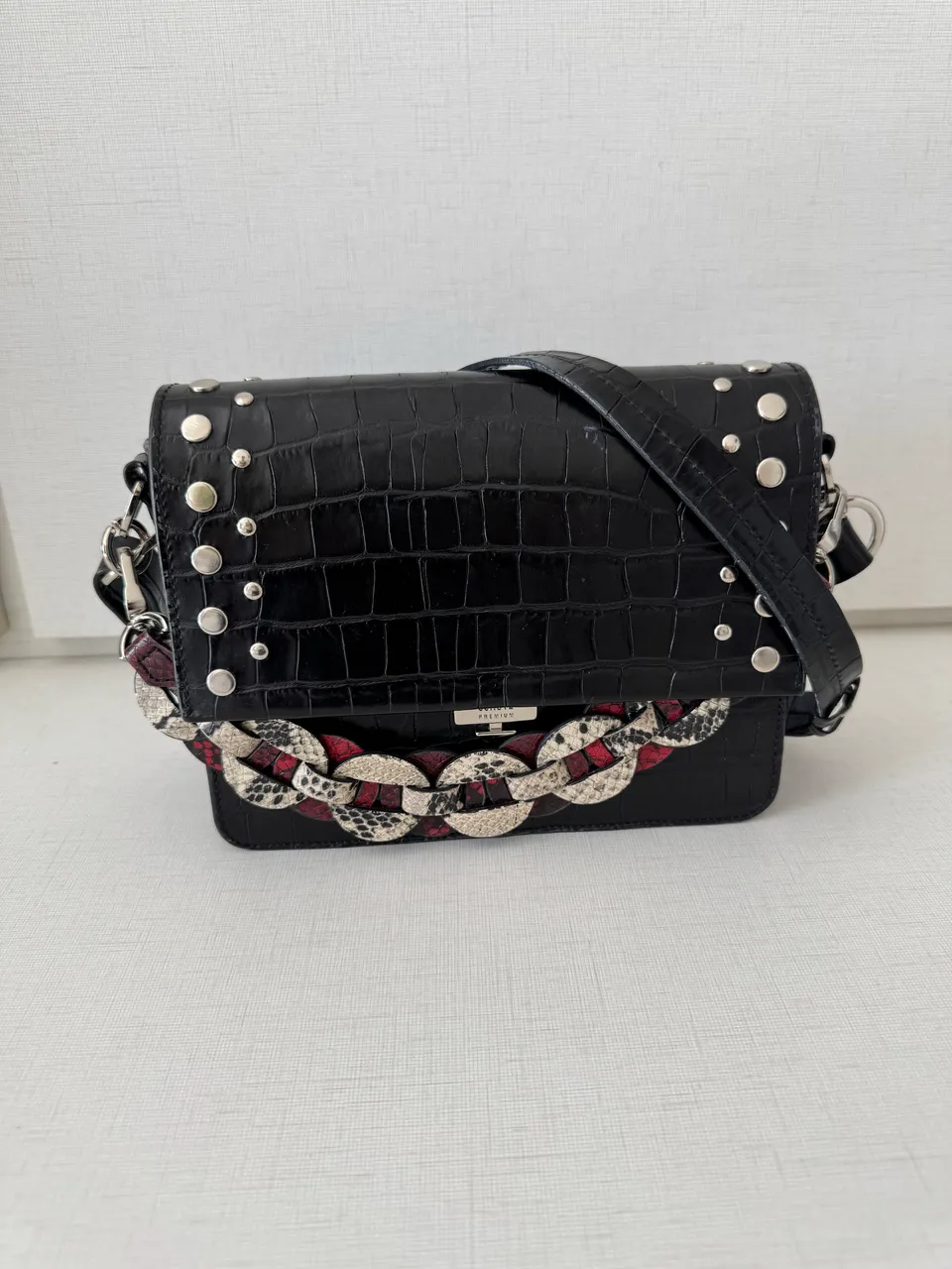 Bolsa preta, largura:0,22xaltura:0,16. Pode ser usada com alça, ou como de mão. Super versátil. Sem desgaste.
