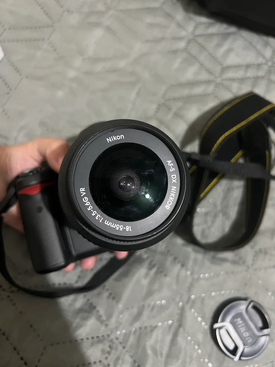 Acompanha lente af-p dx nikkor 18-55mm, carregador e bateria, bolsa para proteção, tampas originais das lentes e cordinha para pescoço!