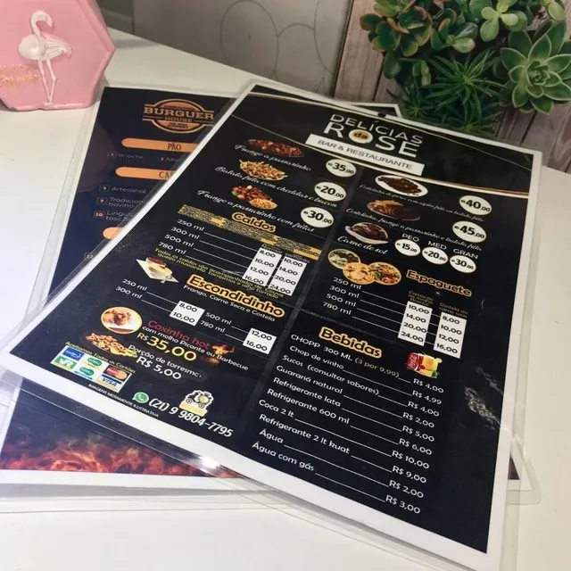 Cardápio Plastificado Frente Colorida = R$10,00 Frente e Verso Coloridos = R$14,99 Entregamos (Consulte sua taxa)