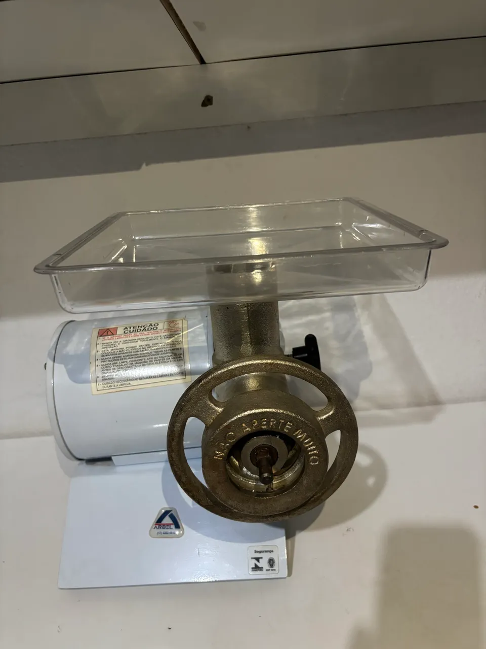 Moedor de carne industrial Arbel, ideal para açougues, restaurantes e cozinhas industriais. Equipamento robusto e eficiente para o preparo de diversos tipos de carne.