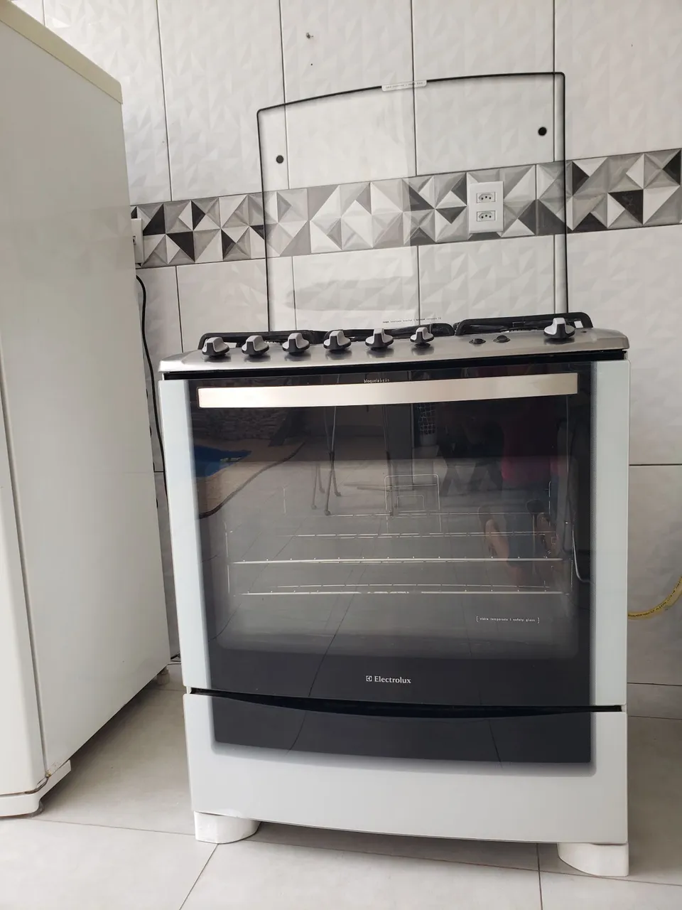 Fogão de 5 bocas mesa de inox, Robusto eletrolux,, tripla chama e 1 queimador maior para preparos rápidos, forno com ótimo isolamento automático, 0,90AX0,76L0,55P motivo mudança tem opção de comprar pelo site parcelado se for perto entrego