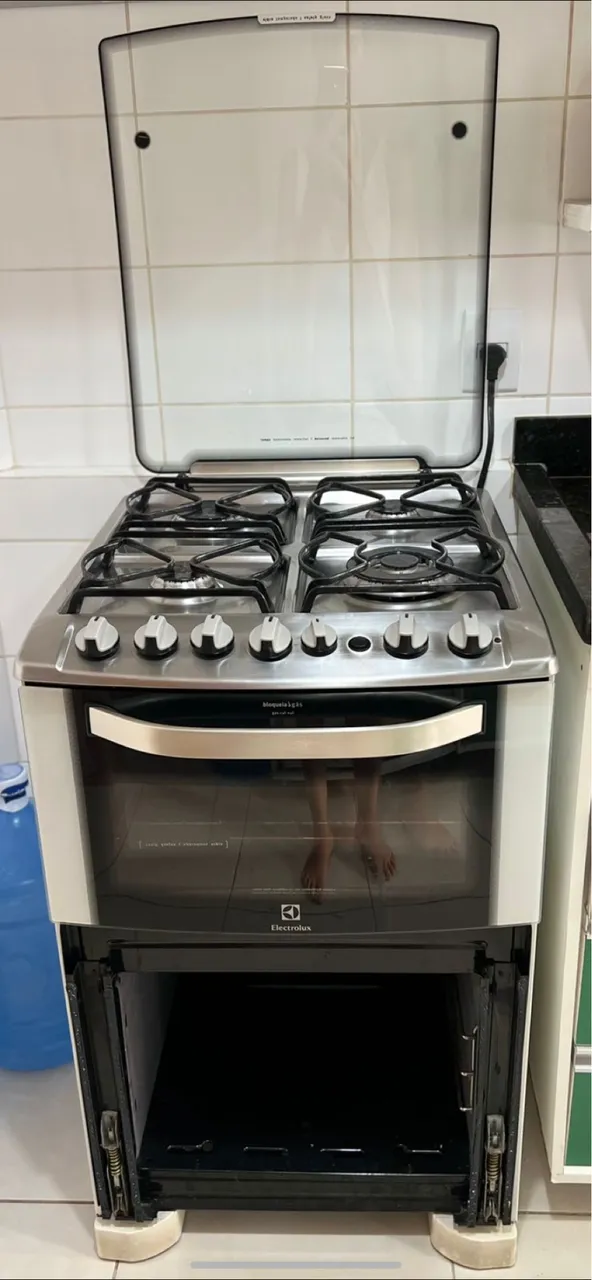Vendo fogão Electrolux dois fornos. Valor R$650,00 Fornos com ligação individual cada um funciona sozinho. A porta de vidro quebrou mas da pra mandar arrumar. Tudo funcionando.