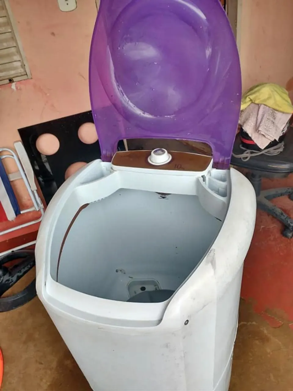 Tanquinho lava roupas com design moderno e eficiente. Ideal para otimizar o seu espaço e facilitar a lavagem das suas roupas. Possui tampa roxa e design compacto.