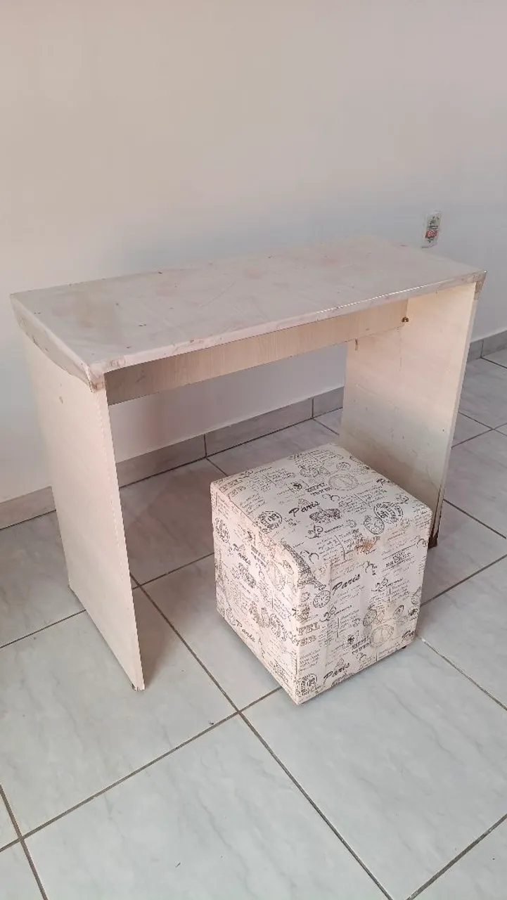 Conjunto de mesinha e puff perfeito para seu escritório ou cantinho de estudos. Design elegante e funcional, ideal para otimizar seu espaço com estilo.