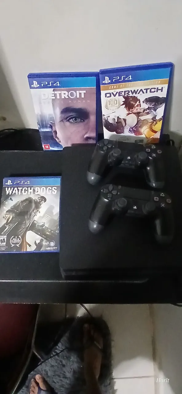 Vídeo game Ps4 Slim 1tb com 3 jogos e 2 controles sem fio em estado de perfeição com um ano de uso . Tem chorinho na negociação
