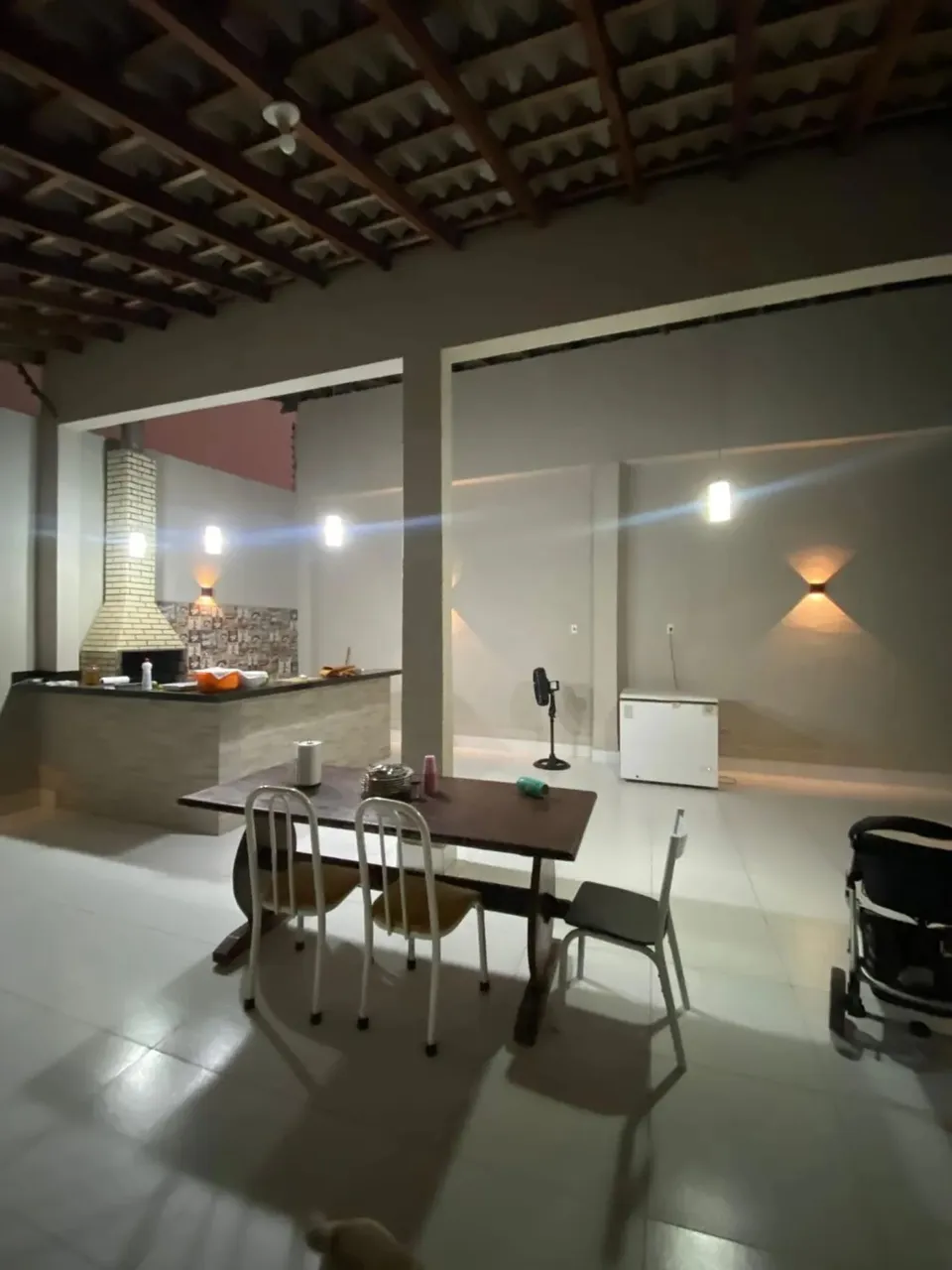 Garagem coberta.