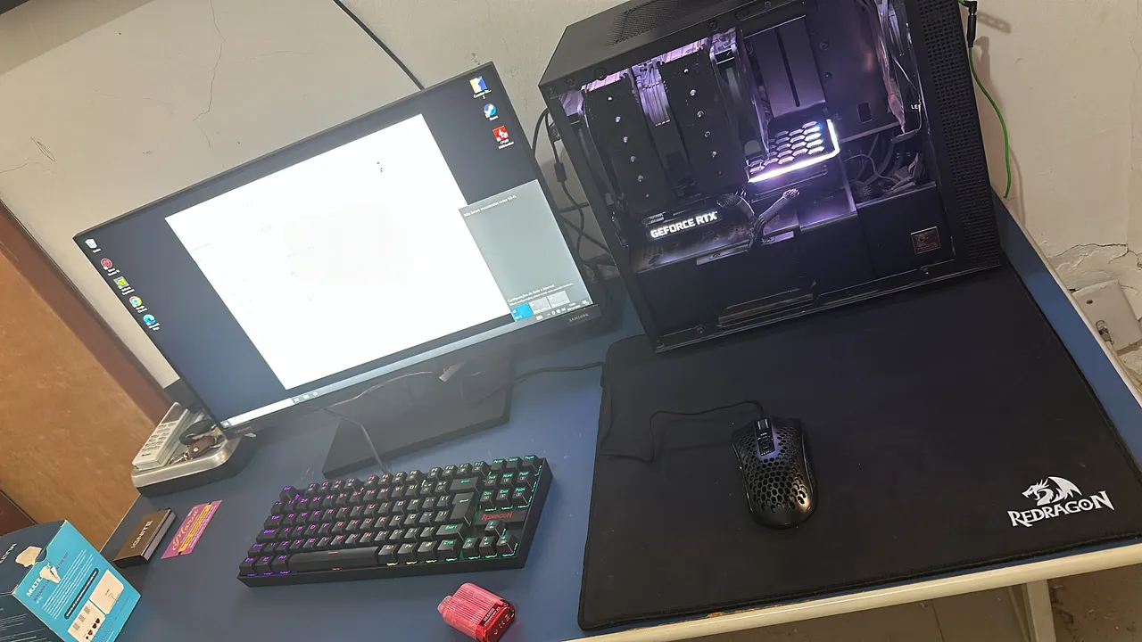 Processador: Intel core i7-10700k Cooler: Noctua NH-D15 chromax black Placa de vídeo: GeForce RTX 3060 Ti 8gb Placa mãe: Asus ROG STRIX B460-I Gaming Memória: DDR4-2400 16gb HyperX Armazenamento: SSD Kingston 240gb SSD ADATA ultimate 120gb Gabinete: NZXT H510 Fonte: Corsair CX750W Monitor: Samsung Odyssey G3 24? 175hz Mouse: Logitech G PRO X superlight Teclado: Redragon Kumara Pro RGB headset: Redragon Zeus X Mousepad: Redragon Flicker Avaliado em R$12.590,00