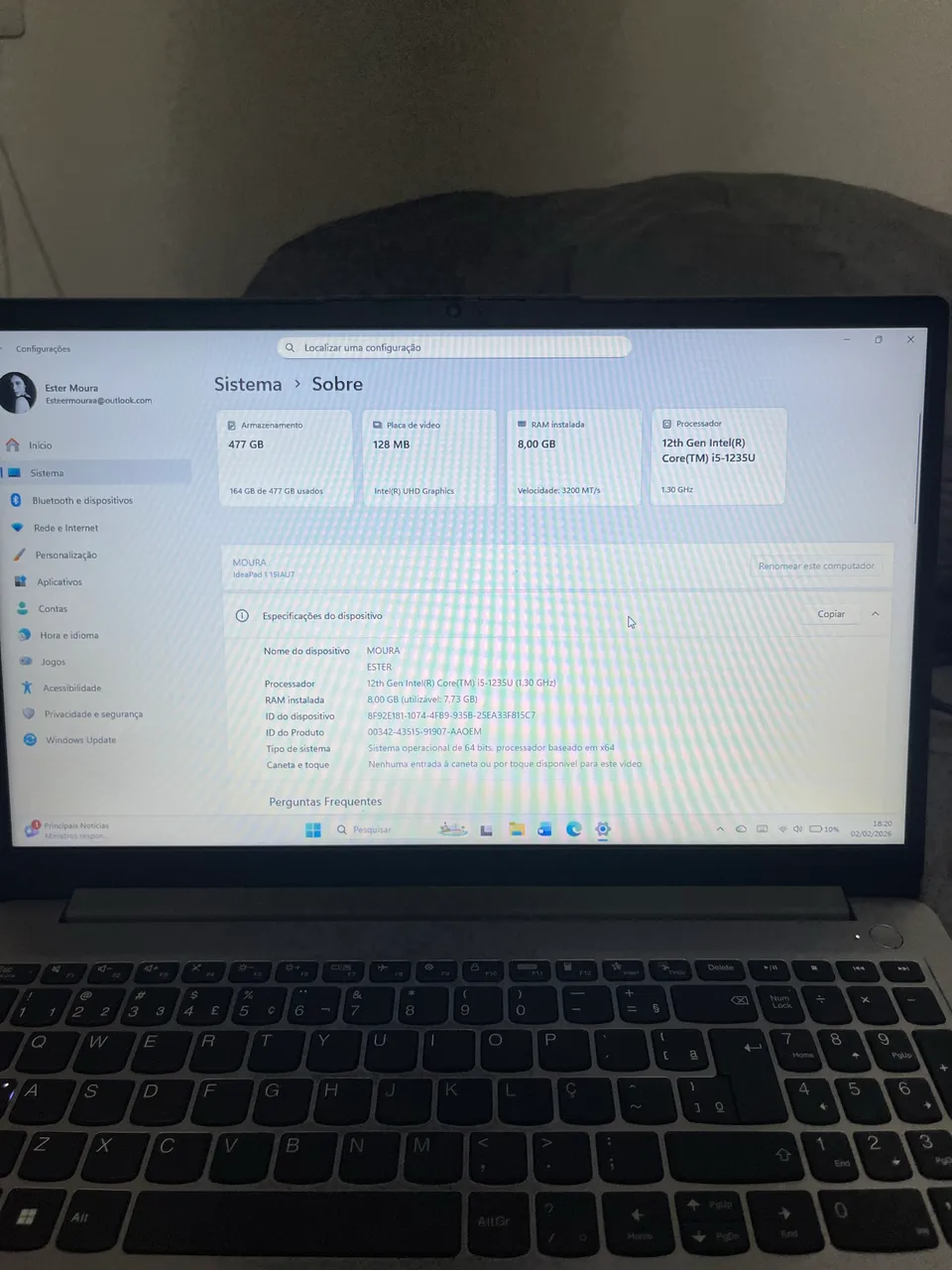 Notebook Lenovo IdeaPad com processador Intel Core i5, 8GB de RAM e tela de alta resolução. Ideal para tarefas diárias e multitarefas.