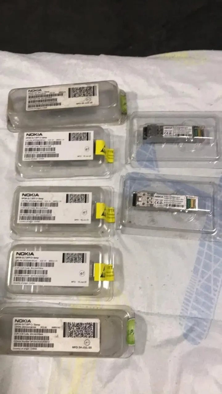 Módulos SFP Nokia Gigabit Ethernet, novos e originais. Ideal para conexões de alta velocidade em redes de dados.