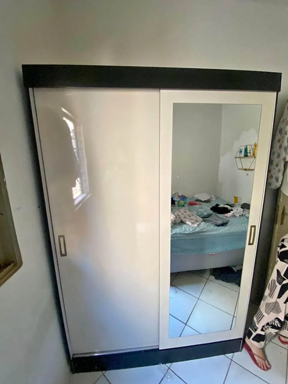 Guarda-roupa elegante e funcional, com design moderno e espelho. Perfeito para organizar suas roupas e otimizar o espaço do seu quarto.