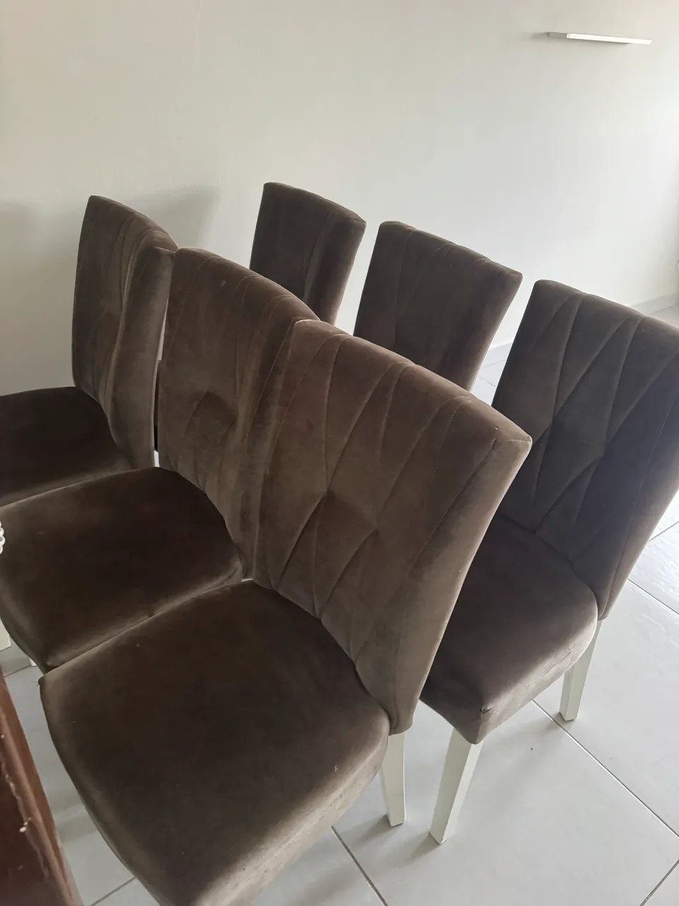 Conjunto com 6 cadeiras elegantes, perfeitas para sua sala de jantar. Design moderno e confortável, ideal para qualquer ambiente. Compradas na duzzi.