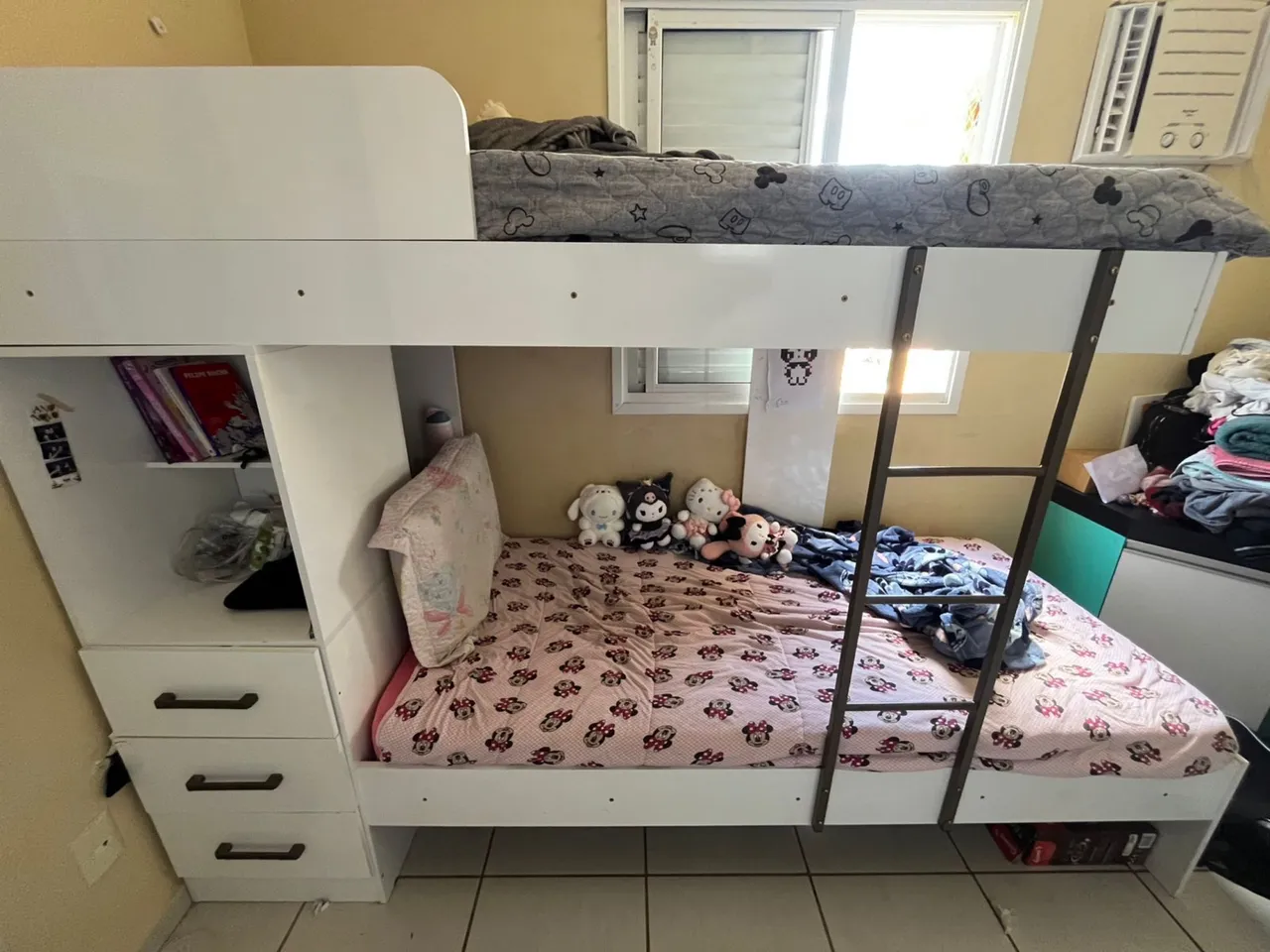 Beliche branco 3 meses de uso, perfeito para otimizar o espaço do quarto. Design moderno e funcional, ideal para crianças e adolescentes. Conforto e segurança garantidos.