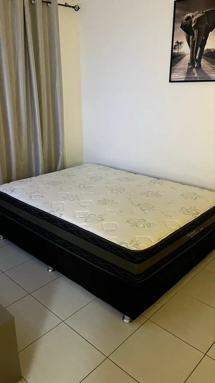 Cama box casal Palermo com molas ensacadas, proporcionando conforto e durabilidade para suas noites de sono. Dimensões de 1.38 por 1.88, ideal para um casal. Durma tranquilo e acorde renovado!