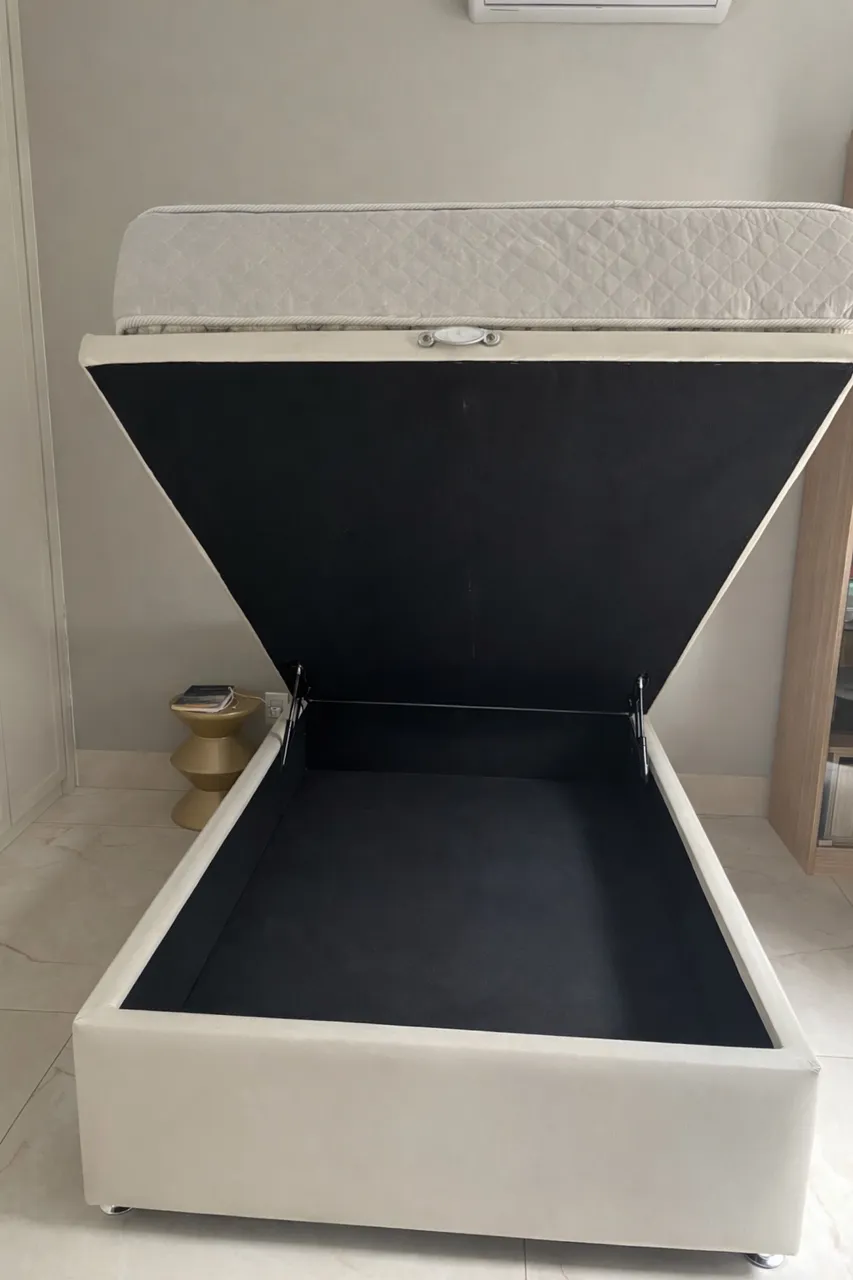 Cama box viúva, colchão espuma castor.