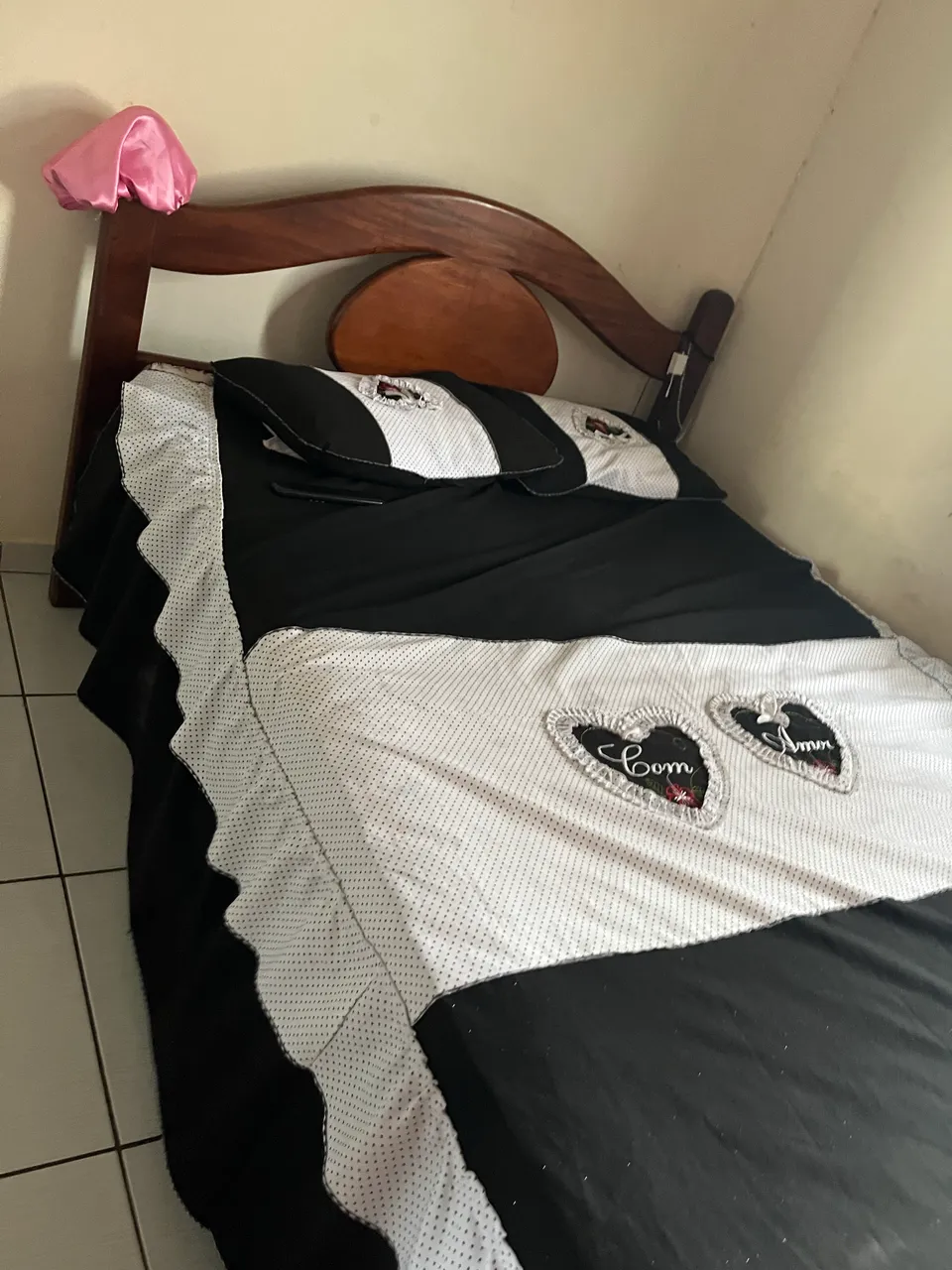 Cama de madeira com design elegante, perfeita para um quarto aconchegante. Proporciona conforto e estilo ao seu ambiente.