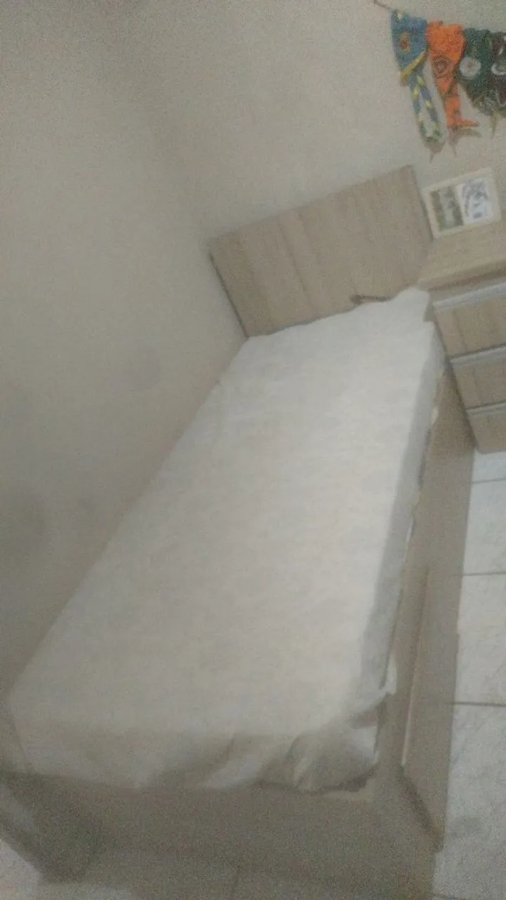 Cama ideal para um quarto aconchegante. E usada, chama no WhatsApp que mando vídeo com detalhes da cama esta em ótimo estado. Possui um gavetão e na mesa tem + 3 Todos fundos e funcionando perfeitamente.