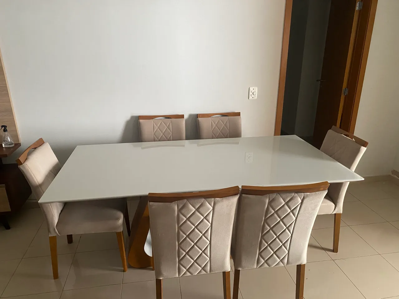 Linda mesa para sua sala de jantar! Design moderno e elegante, perfeita para reunir a família e amigos. Adicione um toque de sofisticação ao seu lar com esta peça única.