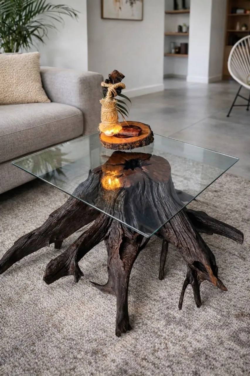 Linda mesa com design rústico e elegante! Perfeita para decorar sua sala de estar, quarto ou escritório. Feita com materiais de alta qualidade e com um visual único.