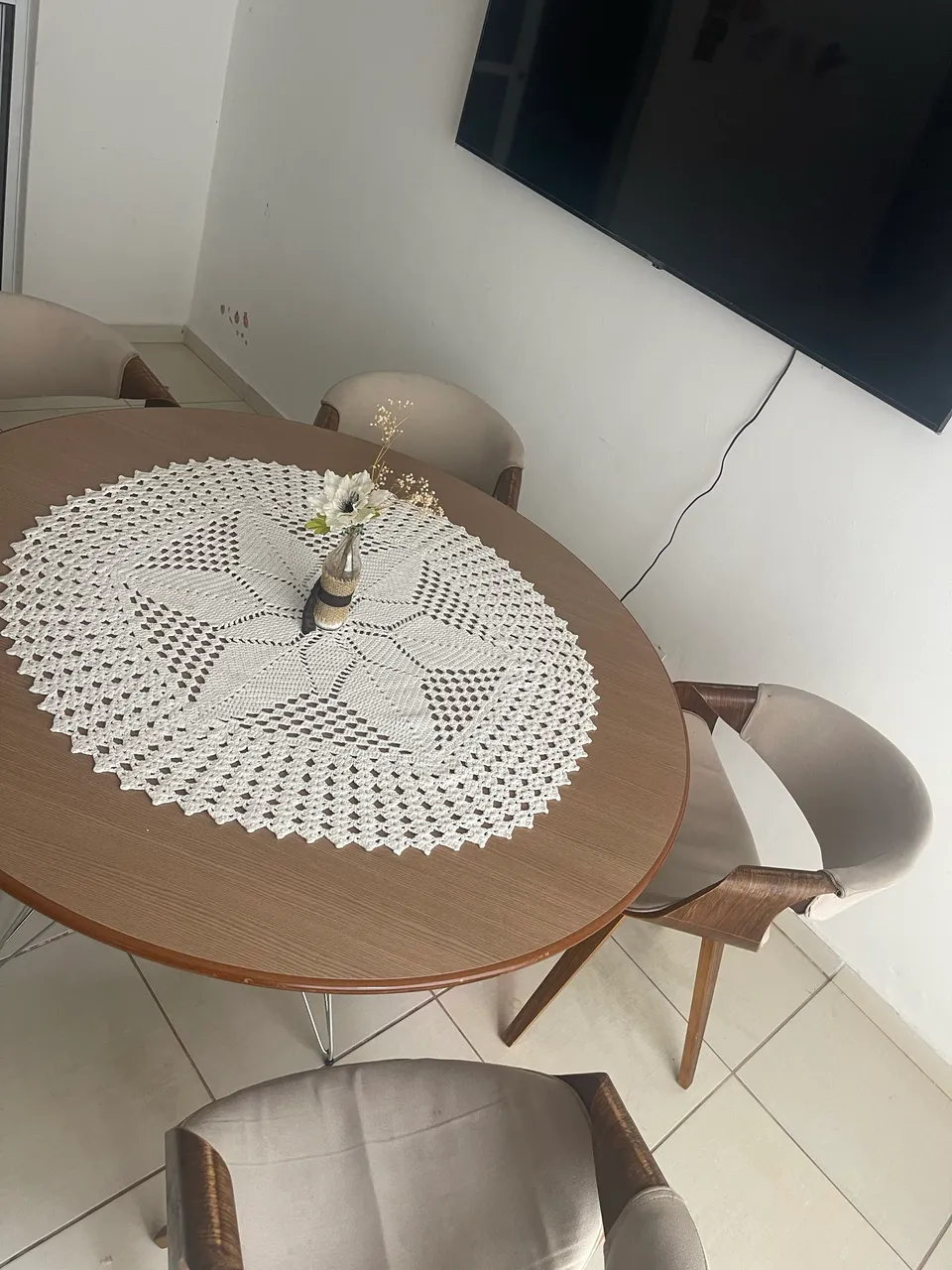 Transforme sua sala de jantar com este elegante jogo de mesa! Design moderno e sofisticado que combina perfeitamente com qualquer ambiente. Perfeito para refeições em família ou para receber seus convidados com muito estilo.