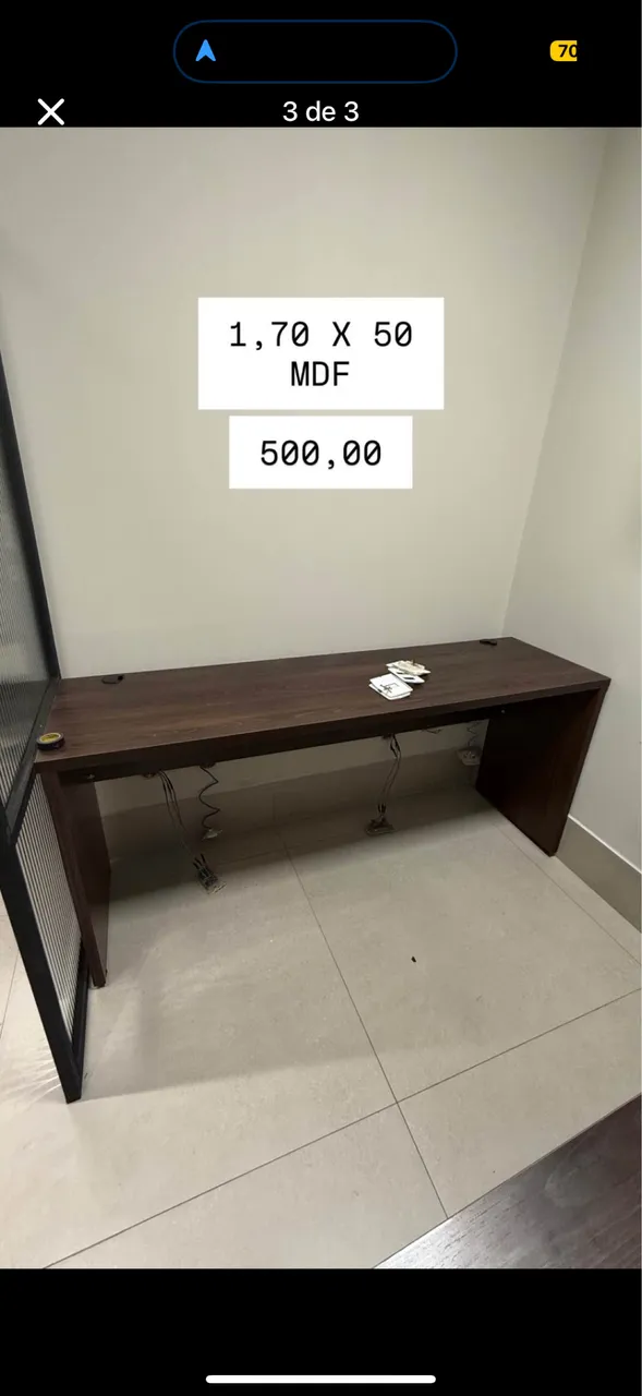 Vendo 4 mesas Mesa 1 : 1,60x65 Mesa 2: 1,70x65 Mesa 3 e 4: 1,70x50 (as duas tem as mesmas medidas) Valor: 500,00 CADA.