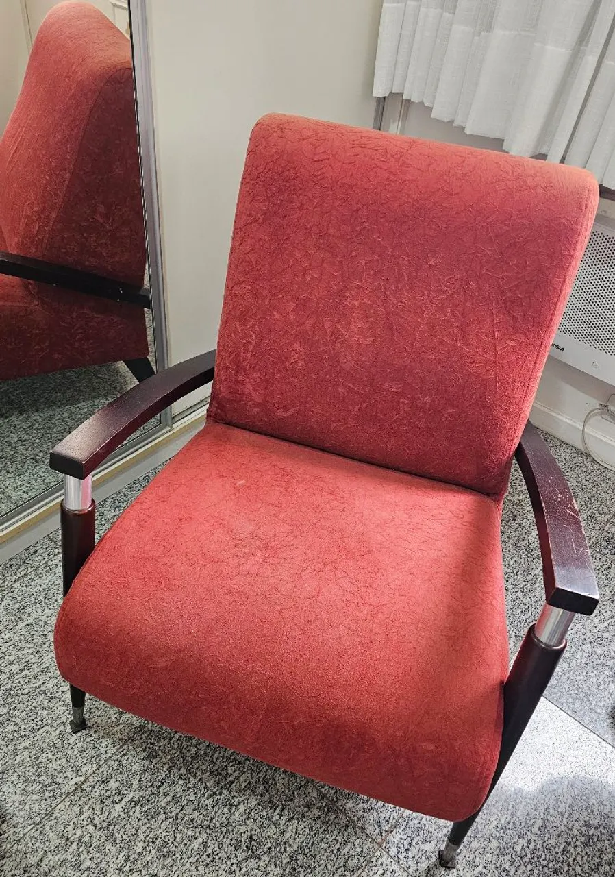Linda poltrona vermelha, perfeita para sua sala! Design elegante e confortável para relaxar. Ideal para criar um ambiente acolhedor.