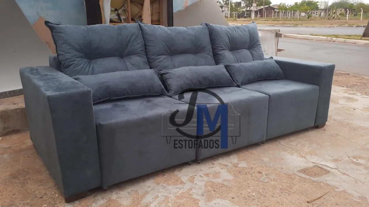 Sofá retrátil de três lugares, feito por fabricação própria. Resistente e produzido com materiais de qualidade. Interessados chamar no chat.