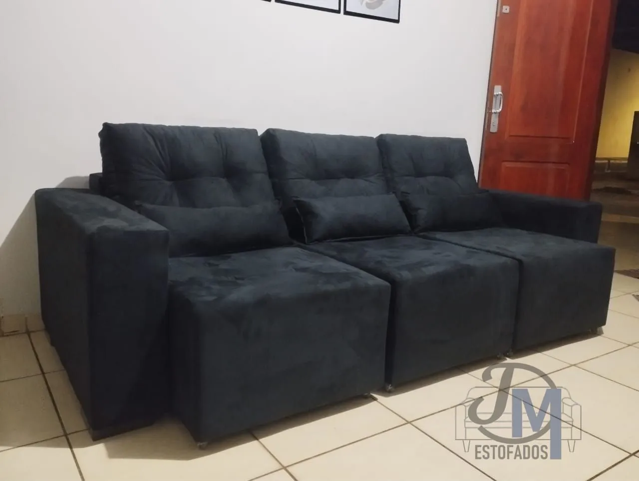 Sofá retrátil de três lugares, feito por fabricação própria. Resistente e produzido com materiais de qualidade. Interessados chamar no chat.