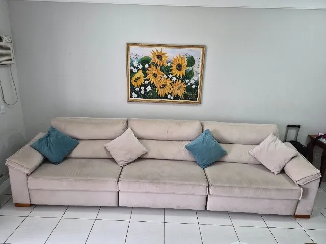 Apresentamos este elegante sofá retrátil, ideal para transformar sua sala. Conforto e design se unem para proporcionar momentos de relaxamento. Semi-novo, em ótimo estado. O sofá mede 3,80 metros de comprimento.
