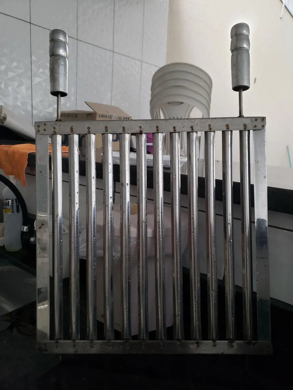 Grelha cromada L0,35xC0,40+0,10 Pegador, espeto duplo 12,00 ,espeto simples 9,00, Grelha Pequena 20,00 ,tudo faço 90,00