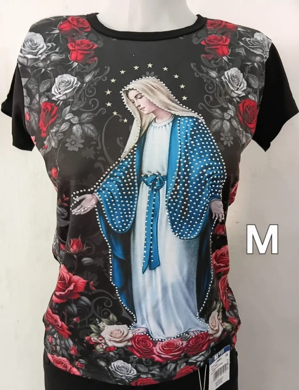 Linda camiseta religiosa com estampa da santa, perfeita para expressar sua fé com estilo e devoção. Tecido de alta qualidade e design exclusivo.