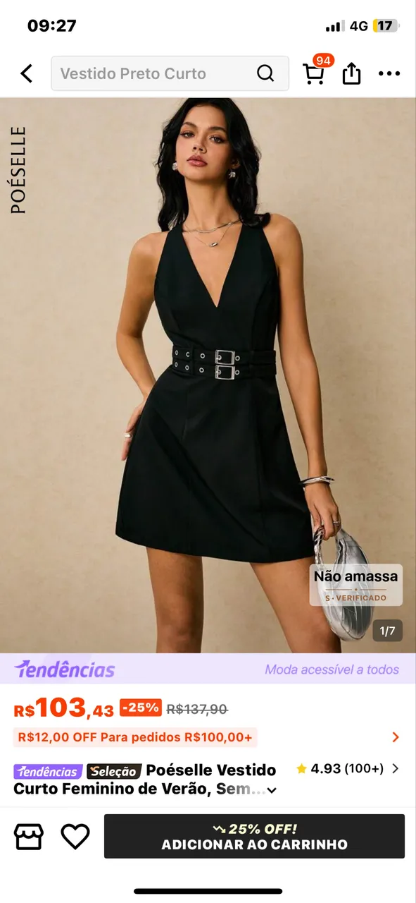 Este vestido curto preto é perfeito para o verão! Com um design elegante e moderno, ele valoriza a silhueta feminina, ideal para diversas ocasiões. Confeccionado com tecido de alta qualidade, este vestido oferece conforto e estilo em um só lugar.
