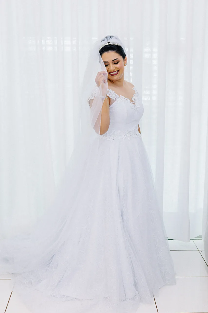 Deslumbre no seu grande dia com este vestido de noiva elegante e romântico. Perfeito para criar memórias inesquecíveis, este vestido é a escolha ideal para a noiva que busca beleza e sofisticação.