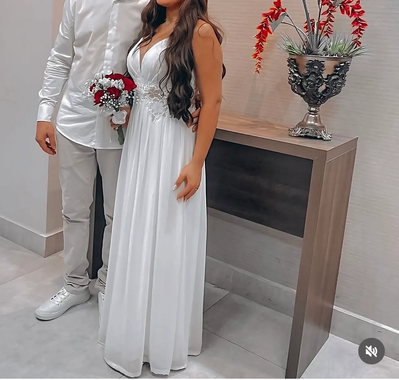 Vestido de noiva usado apenas 1x (apenas 2h de uso, só fui no cartório com ele) perfeitíssimo estado, incrivelmente lindo, tecido de festa todo encorpado, forrado, com detalhes na cintura, tamanho M. Se tiver interesse pode entrar em contato no wpp 65 ... ver número