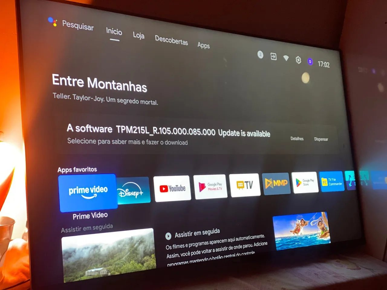 Smart TV Philips 55 polegadas 4K, tela grande, cores vibrantes e imagem de alta qualidade. Ideal para filmes, séries e jogos, proporcionando uma experiência imersiva.