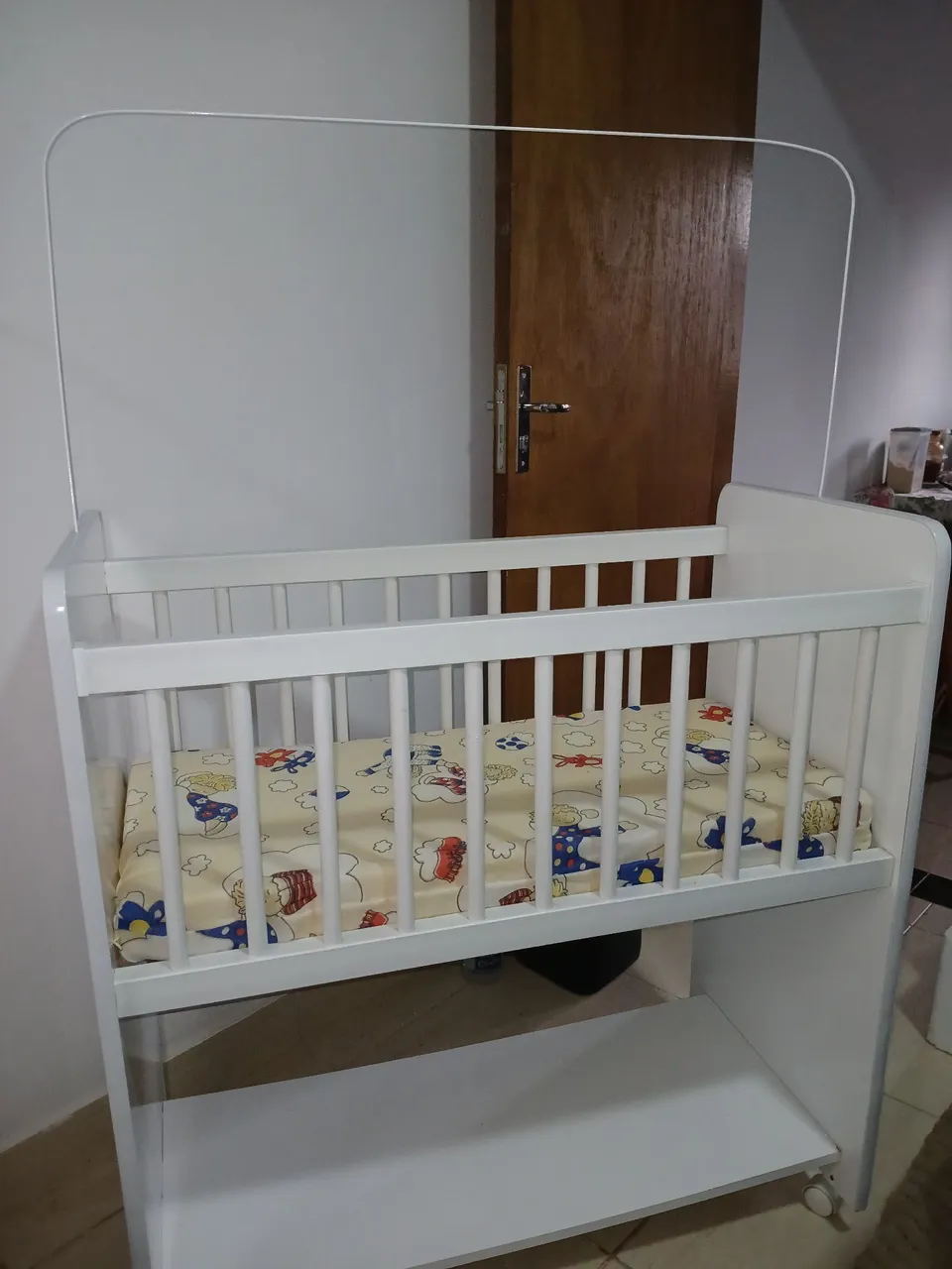 Lindo mini berço branco com colchão incluso! Ideal para os primeiros meses do bebê, prático e confortável. Perfeito para o quarto do seu pequeno!
