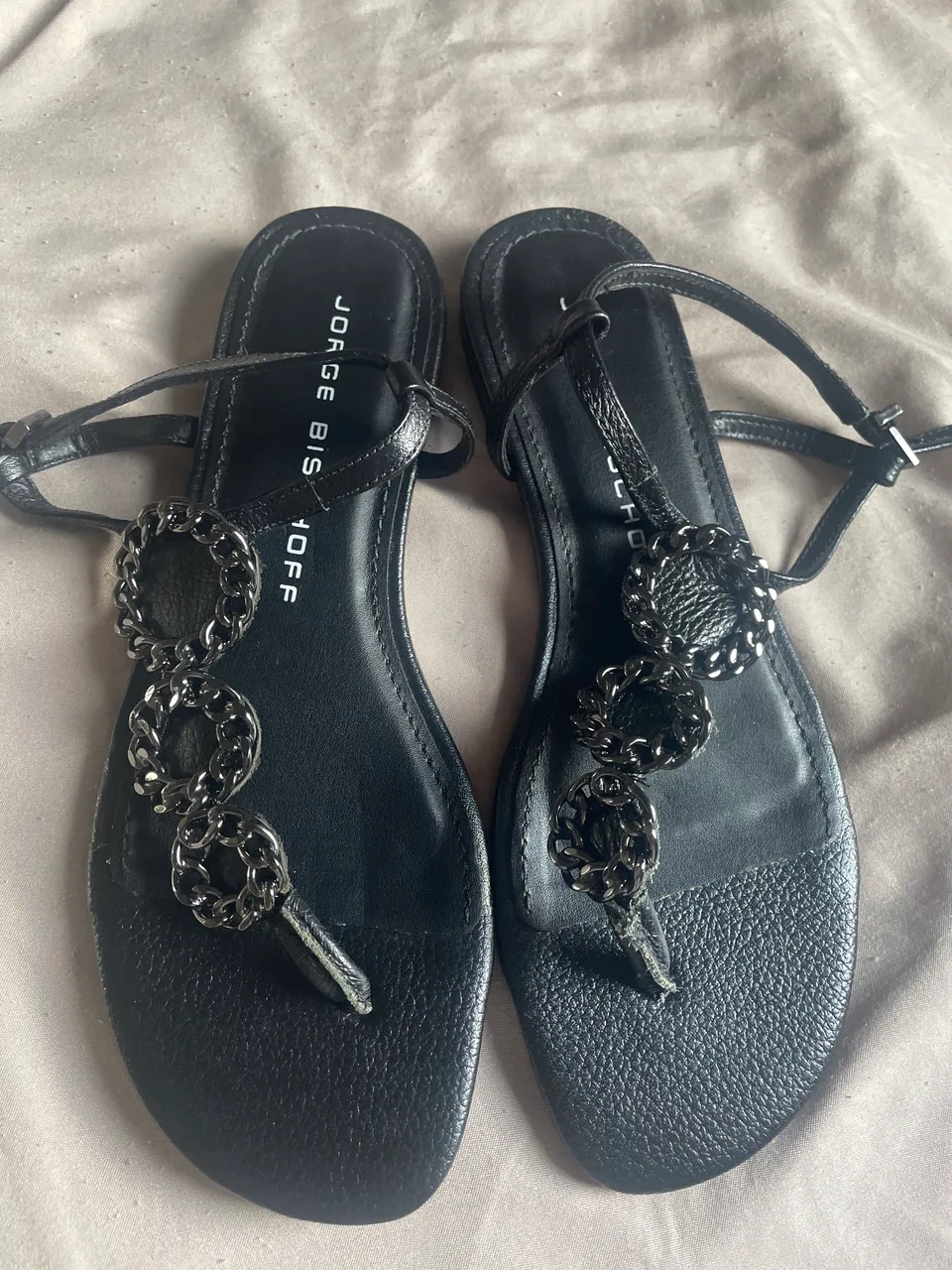 Linda rasteira nunca usada em couro da marca Jorge bischoff