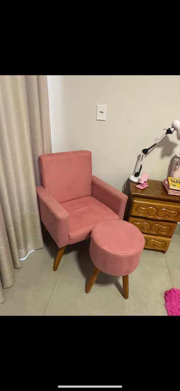 Linda poltrona rosa com design moderno e confortável. Perfeita para relaxar e decorar seu ambiente com estilo.